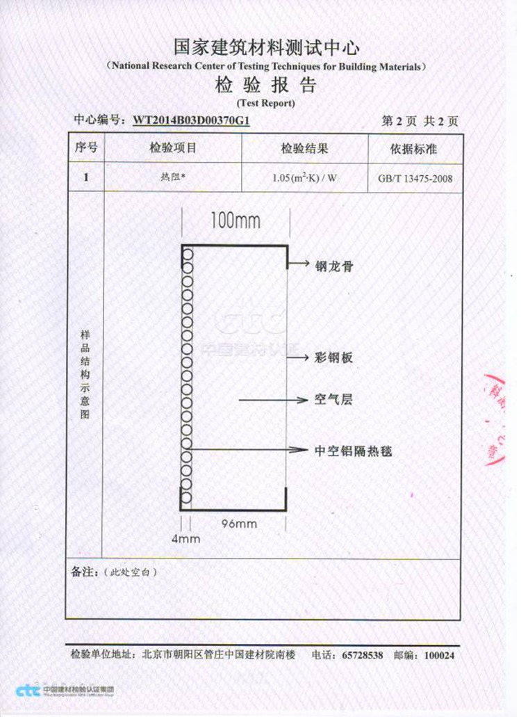 >> (气泡铝隔热毯)热阻系数检测报告